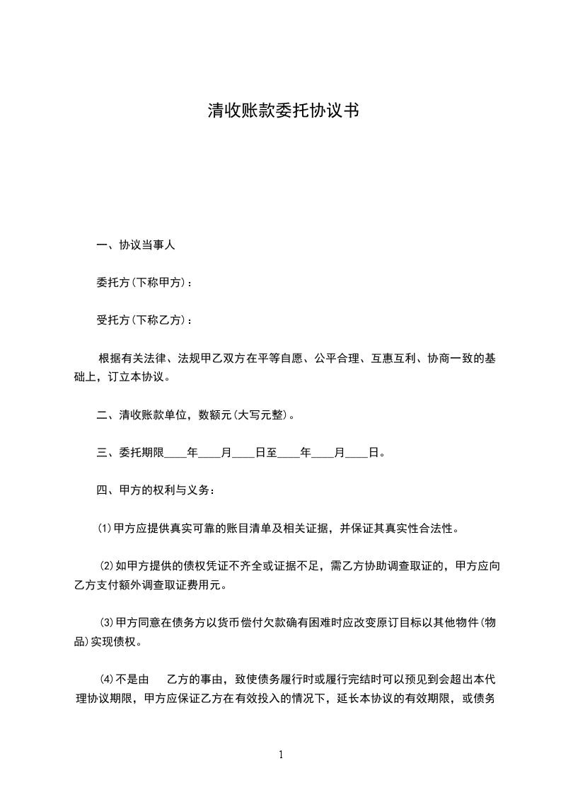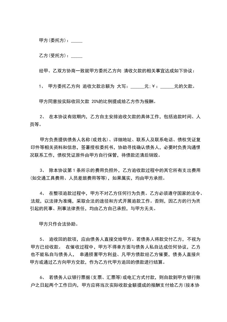 第五条 委托清收费用及支付 委托清收费用以甲方与乙方另行约定为准。