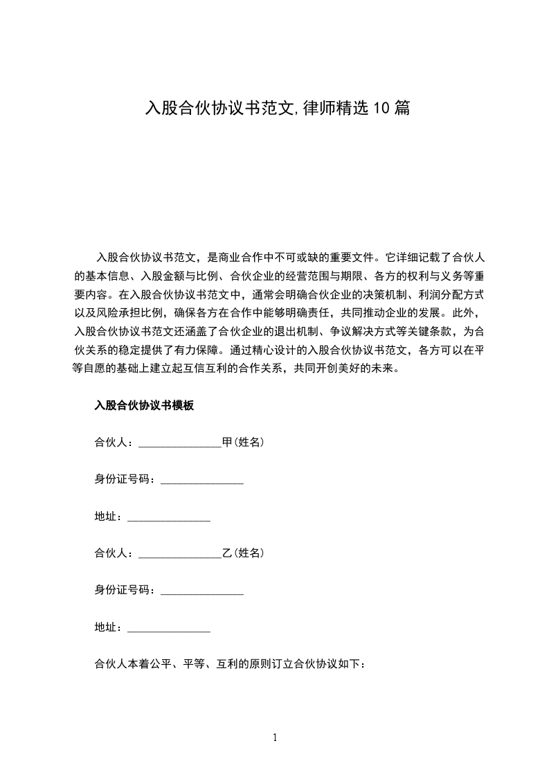 入股合伙协议书范文的运用,不仅简化了合伙企业的设立流程,还提高了合作效率。借助入股合伙协议书范文,合伙人可以快速达成合作意向,明确各方职责和权益,降低合作风险。同时,入股合伙协议书范文还能够帮助合伙人在合作过程中解决可能出现的纠纷,维护合伙企业的稳定运营。此外,该范文还具有灵活性,可以根据不同合伙企业的特点和需求进行个性化调整,满足各方的特殊需求。因此,在商业合作中,选择入股合伙协议书范文是一种明智的选择,它能够为合伙企业的顺利发展奠定坚实基础,促进各方共赢。