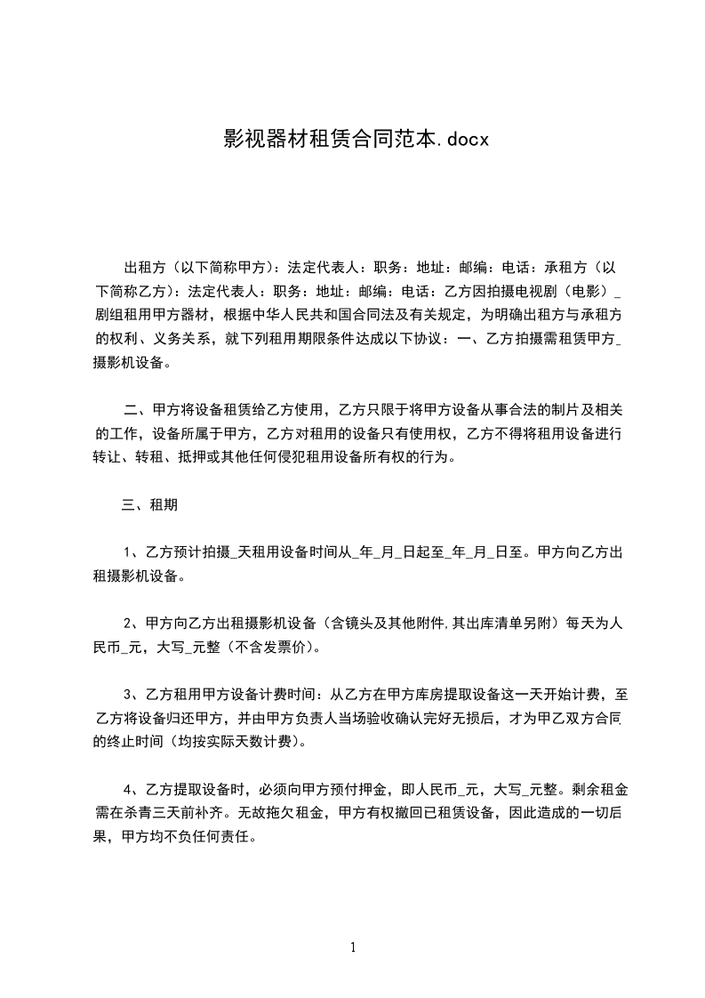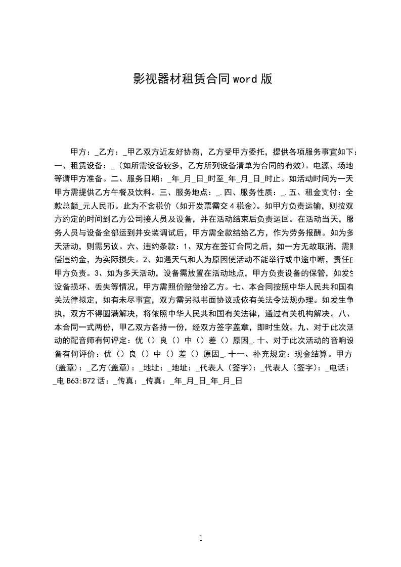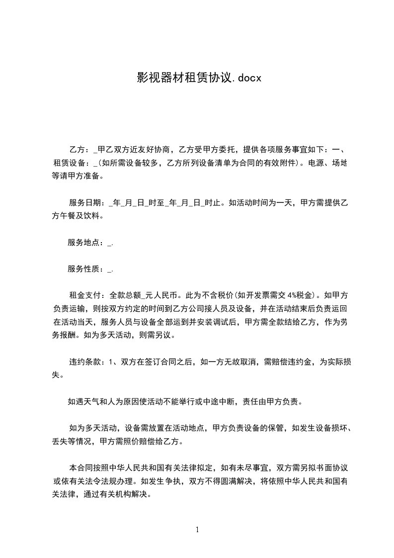 一、租赁设备:_________。电源、场地等请甲方准备。