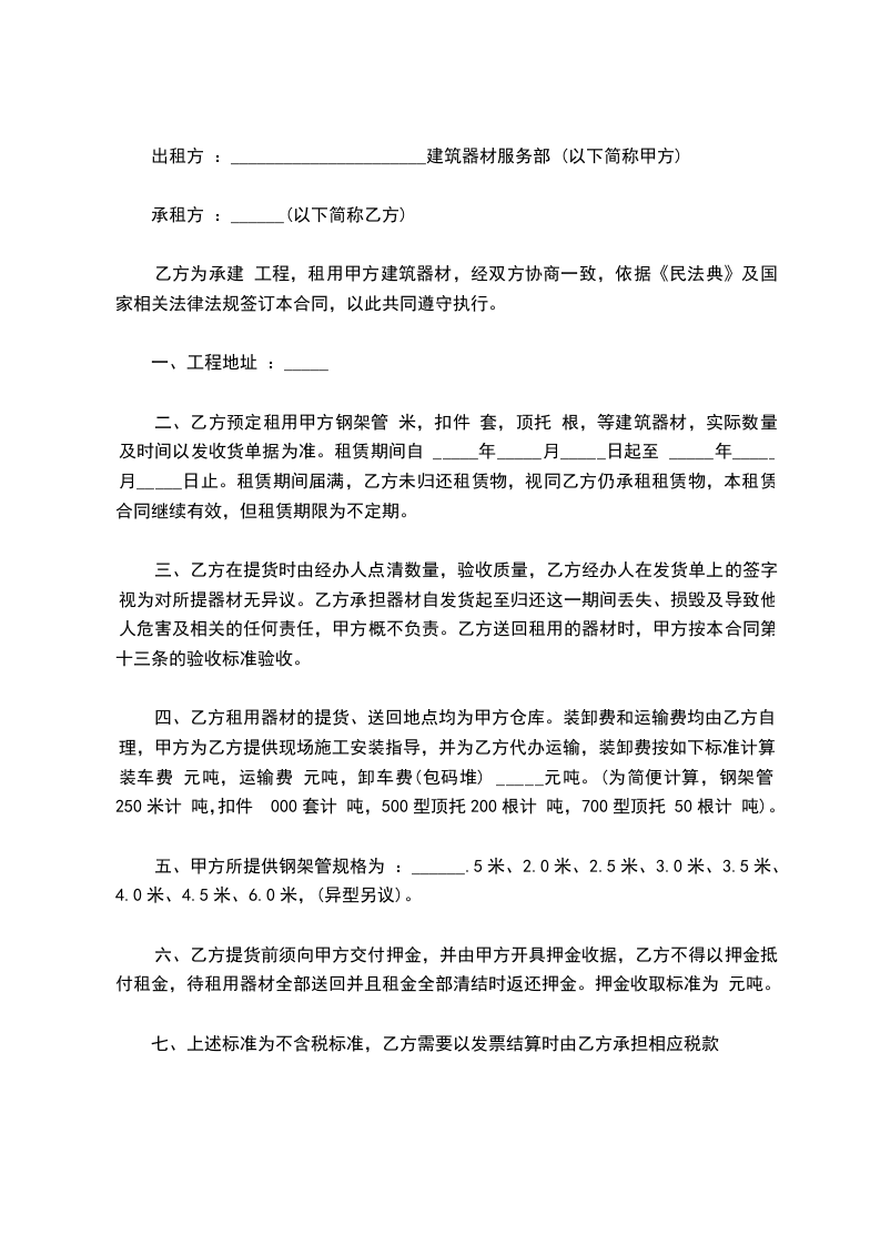 五、租金支付:全款总额_________元人民币。此为不含税价。如甲方负责运输,则按双方约定的时间到乙方公司接人员及设备,并在活动结束后负责运回。在活动当天,服务人员与设备全部运到并安装调试后,甲方需全款结给乙方,作为劳务报酬。如为多天活动,则需另议。