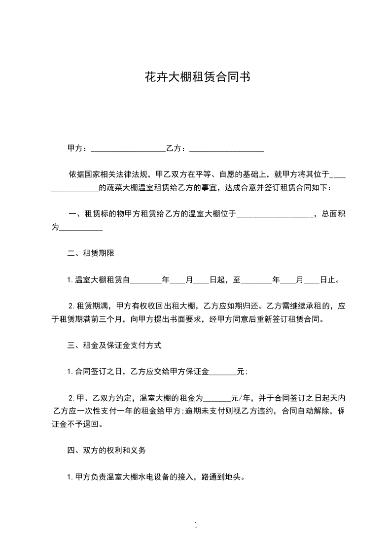 一、租赁标的物甲方租赁给乙方的温室大棚位于___________________,总面积为___________