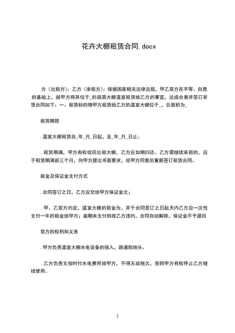 1.温室大棚租赁自________年____月____日起,至________年____月____日止。