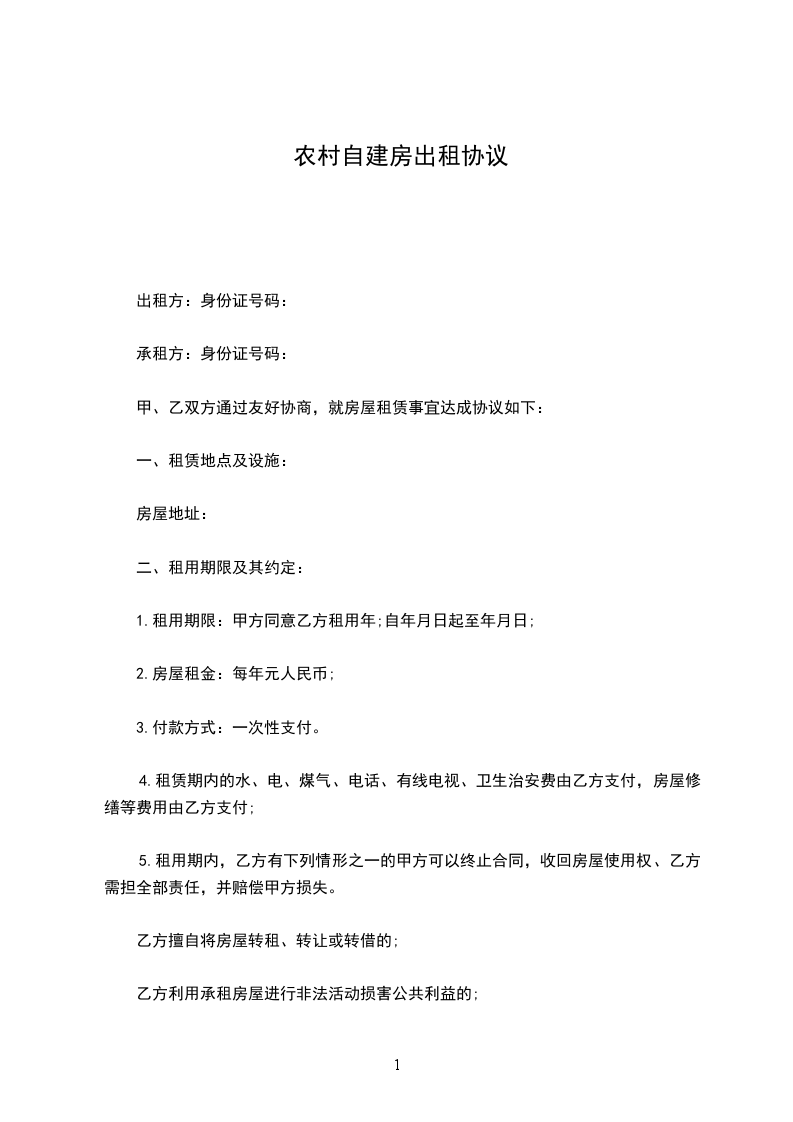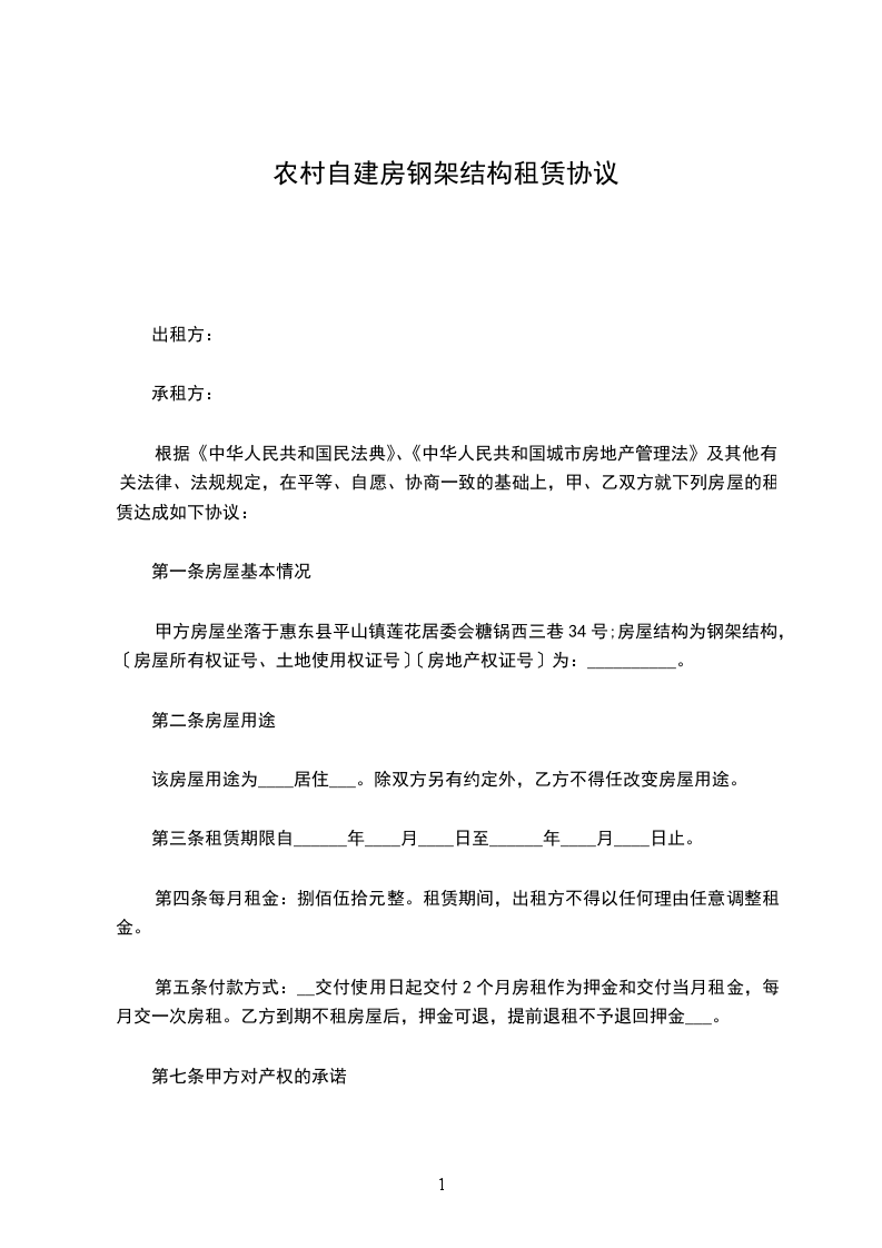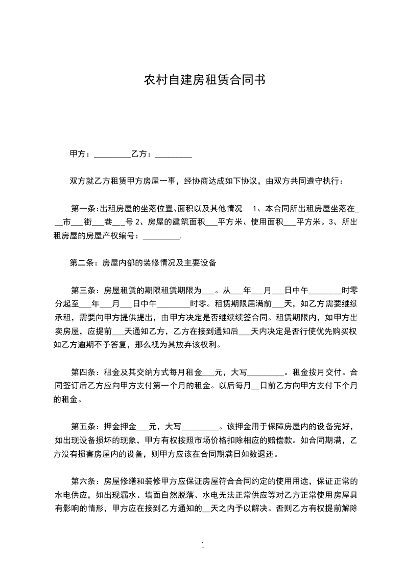 第一条:出租房屋的坐落位置、面积以及其他情况1、本合同所出租房屋坐落在___市___街___巷___号2、房屋的建筑面积___平方米、使用面积___平方米。3、所出租房屋的房屋产权编号:_________.