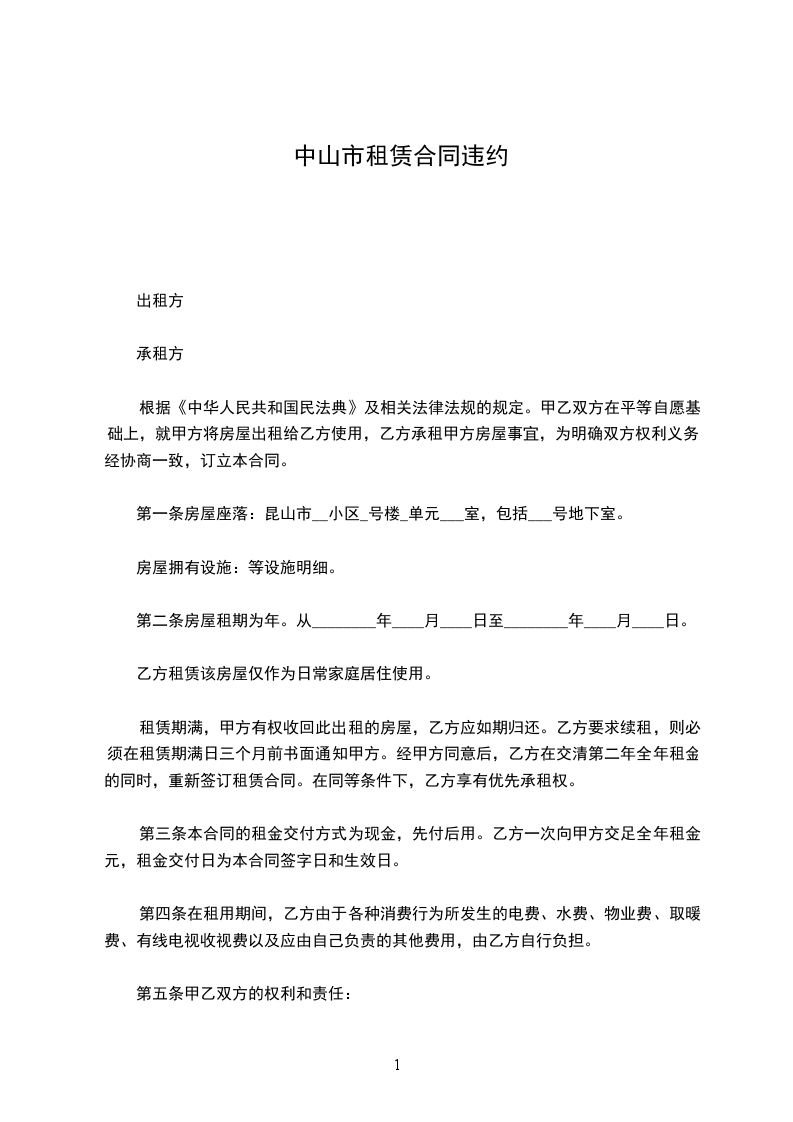 第一条房屋座落:昆山市__小区_号楼_单元___室,包括___号地下室。