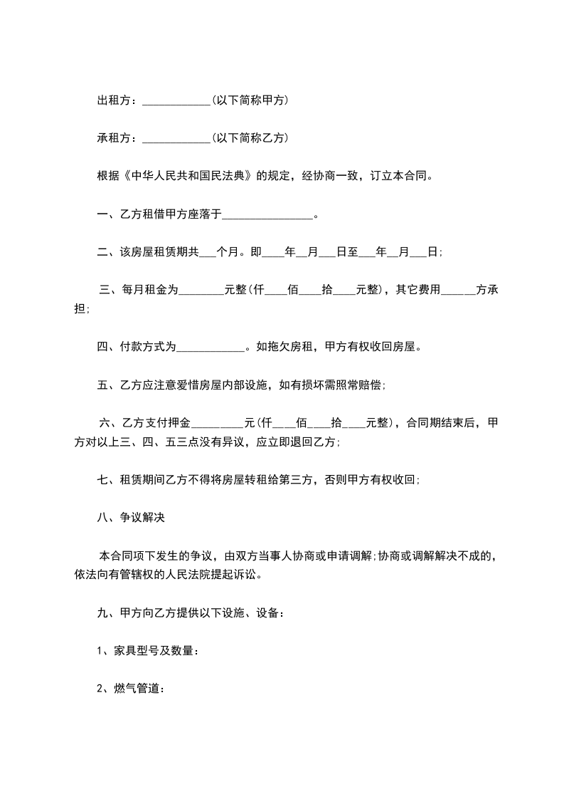 根据《中华人民共和国民法典》及相关法律法规的规定。甲乙双方在平等自愿基础上,就甲方将房屋出租给乙方使用,乙方承租甲方房屋事宜,为明确双方权利义务,经协商一致,订立本合同。
