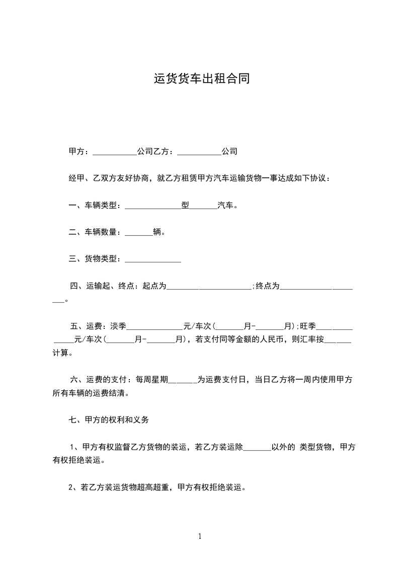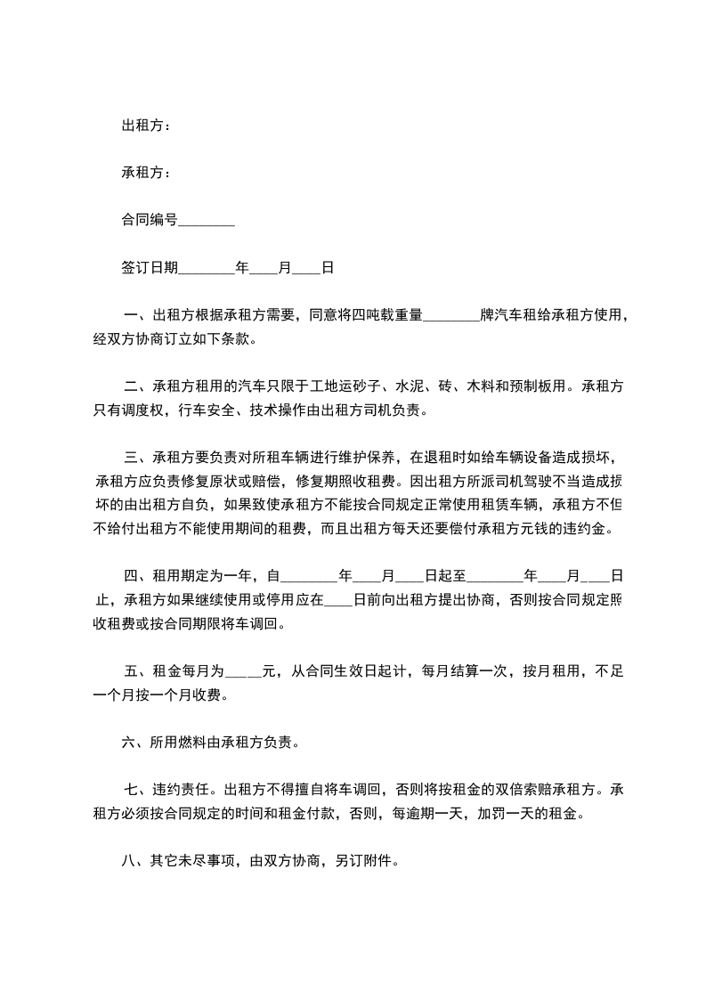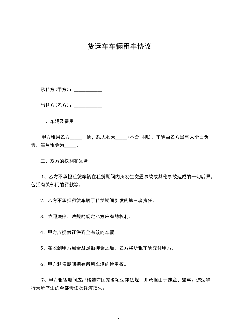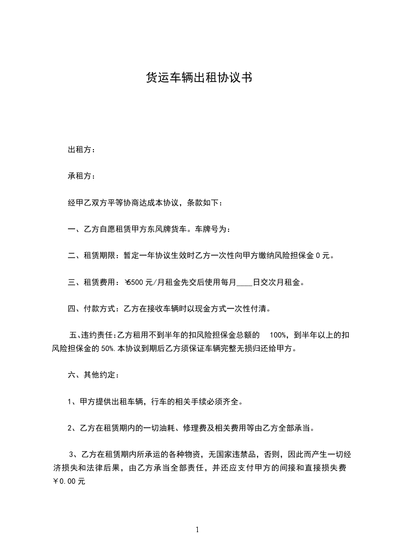 一、乙方自愿租赁甲方东风牌货车。车牌号为: