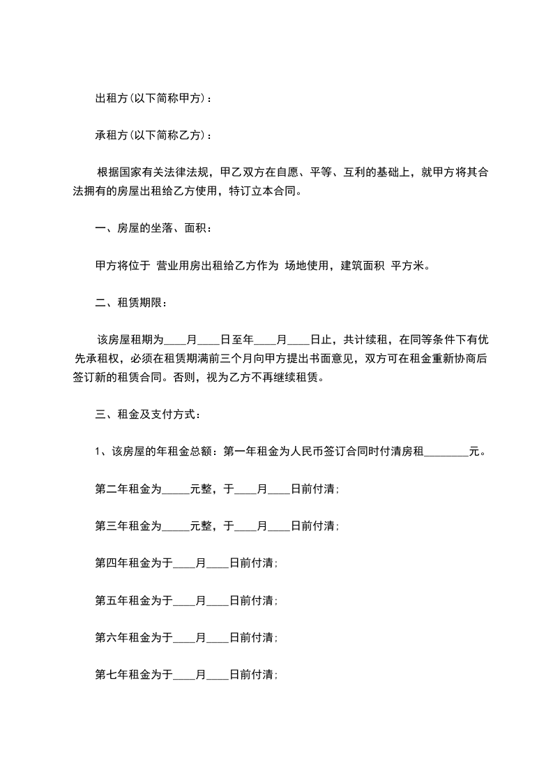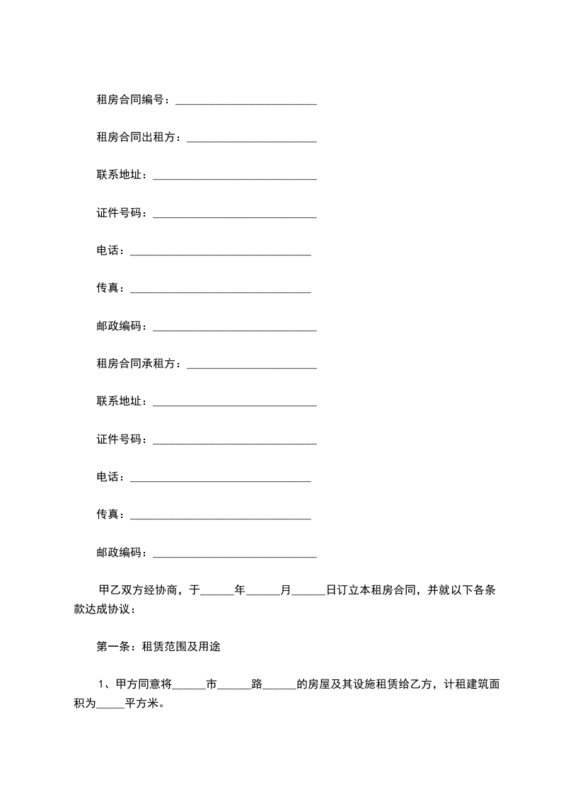二、甲租赁给乙方的房屋建筑面积为_____平方米,使用面积为_____平方米。甲方同意乙方所租房屋作为经营用,其范围以乙方营业执照为准。