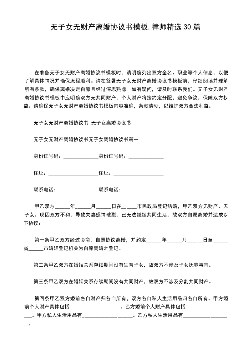 离婚协议书无子女2