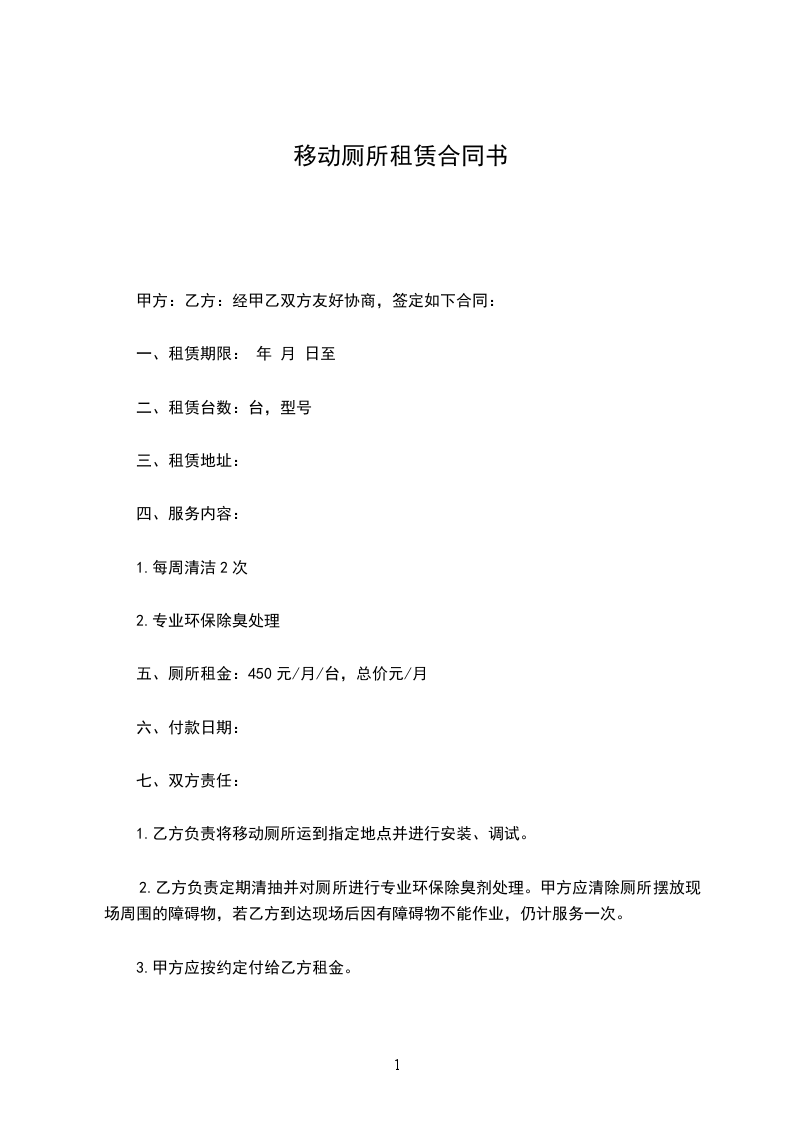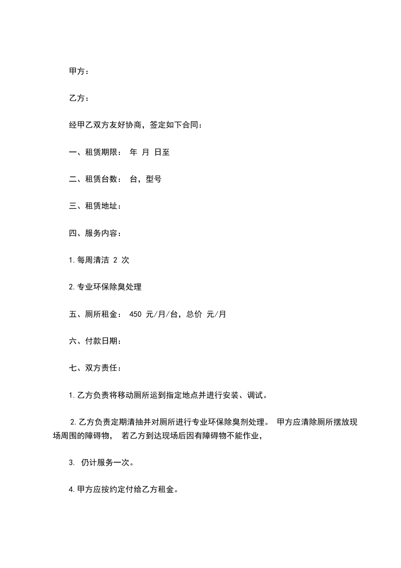 五、厕所租金:450元/月/台,总价元/月