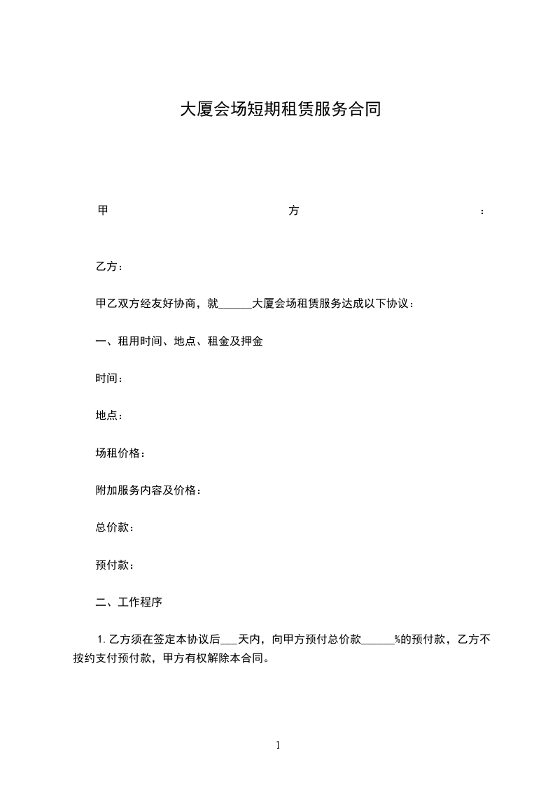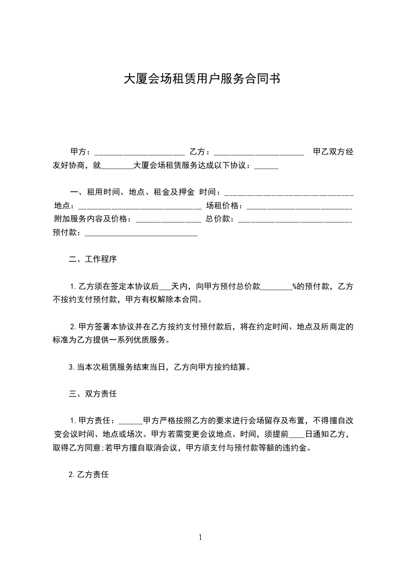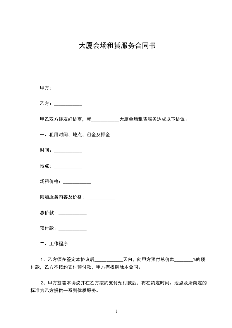 甲乙双方经友好协商,就杭州________大厦会场租赁服务达成以下协议: