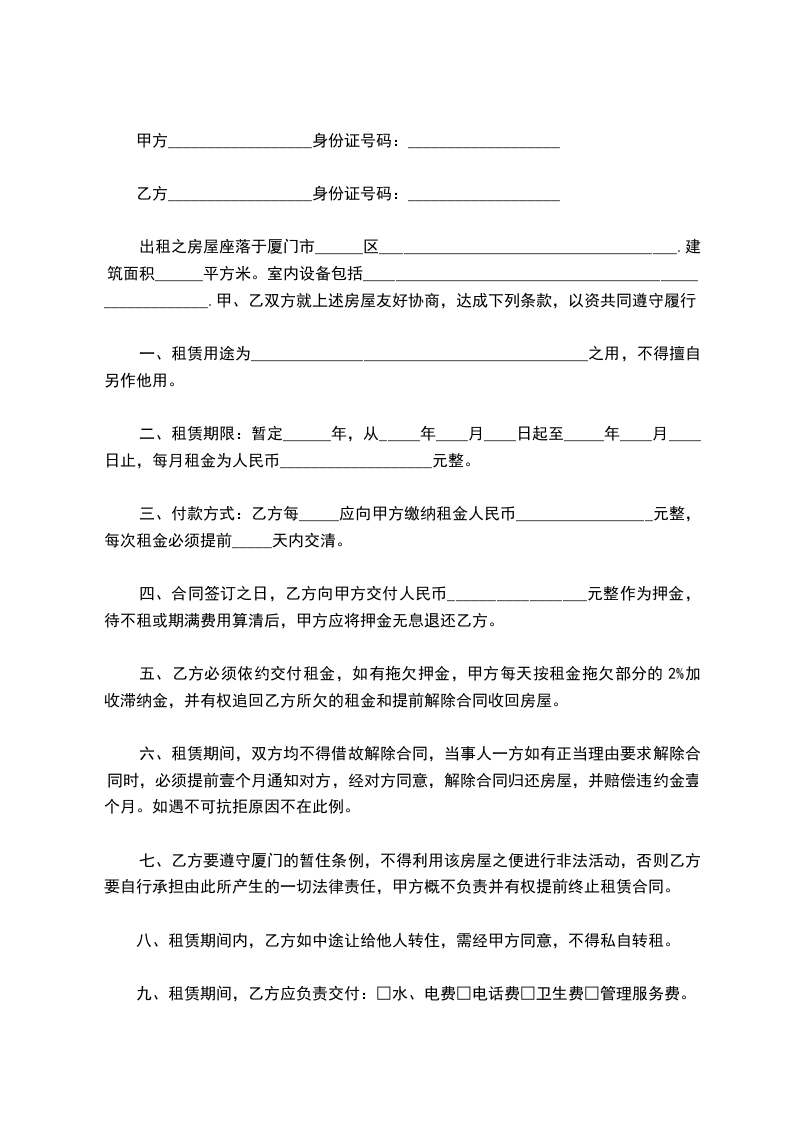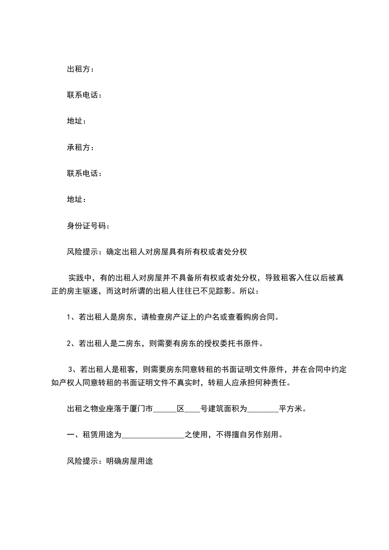 出租方:_____,男/女,身份证号码___________________________
