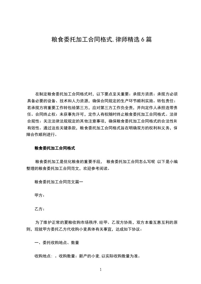 甲方:乙方:为了维护正常的夏粮收购市场秩序,经甲、乙双方协商,双方本着互惠互利的原则,现就甲方委托乙方代收购小麦具体有关事宜,达成如下协议: