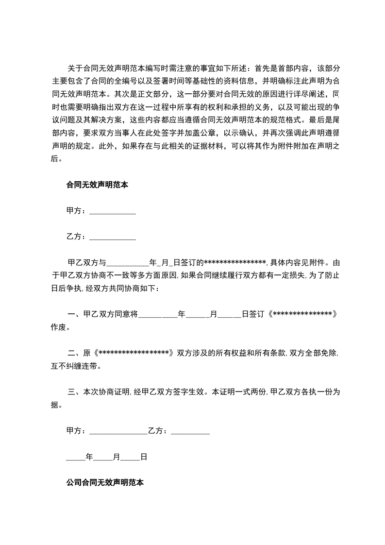 一、甲乙双方同意将__________年__________月__________日签订的《__________合同》作废。