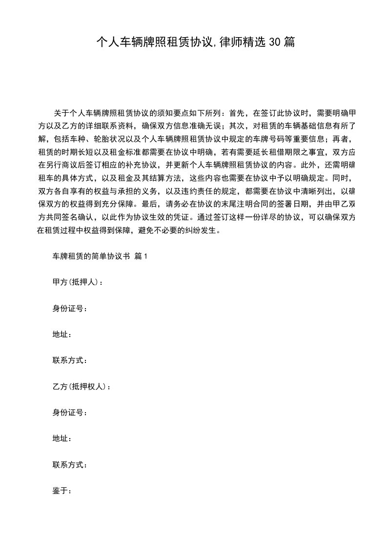 根据《中华人民共和国民法典》的有关规定,按照平等互利的原则,为明确出租方(甲方)、承租方(乙方)权利义务关系,双方经友好协商,就汽车牌照租赁事宜达成一致意见,同意按下列条款签订本协议。