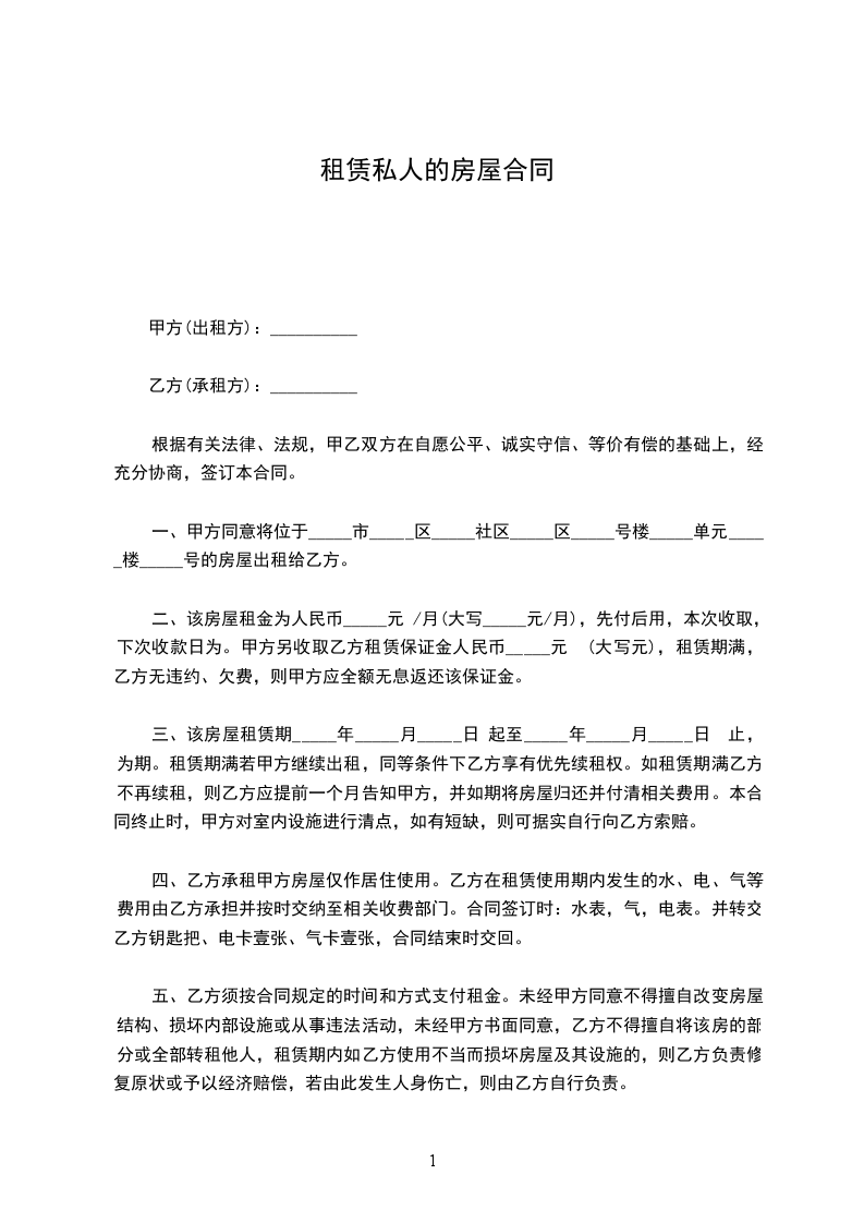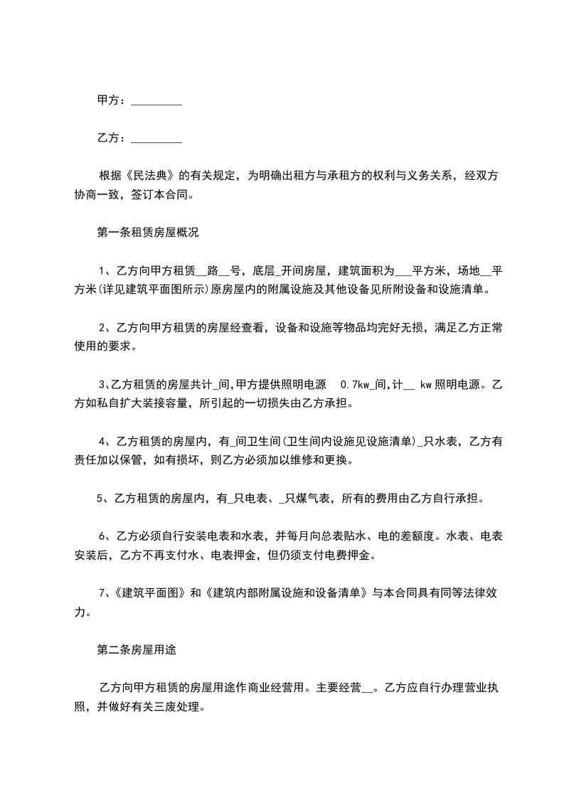 第一条甲方保证所出租的房屋符合国家对租赁房屋的有关规定。