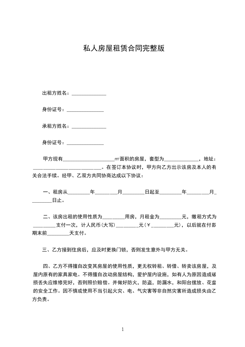 1、该房屋每月租金为_____元。