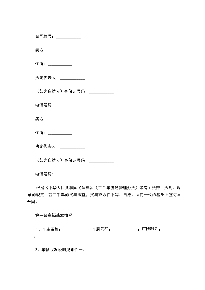 根据《中华人民共和国民法典》、《二手车流通管理办法》等有关法律、法规、规章的规定,就二手车的买卖事宜,买卖双方在平等、自愿、协商一致的基础上签订本合同。