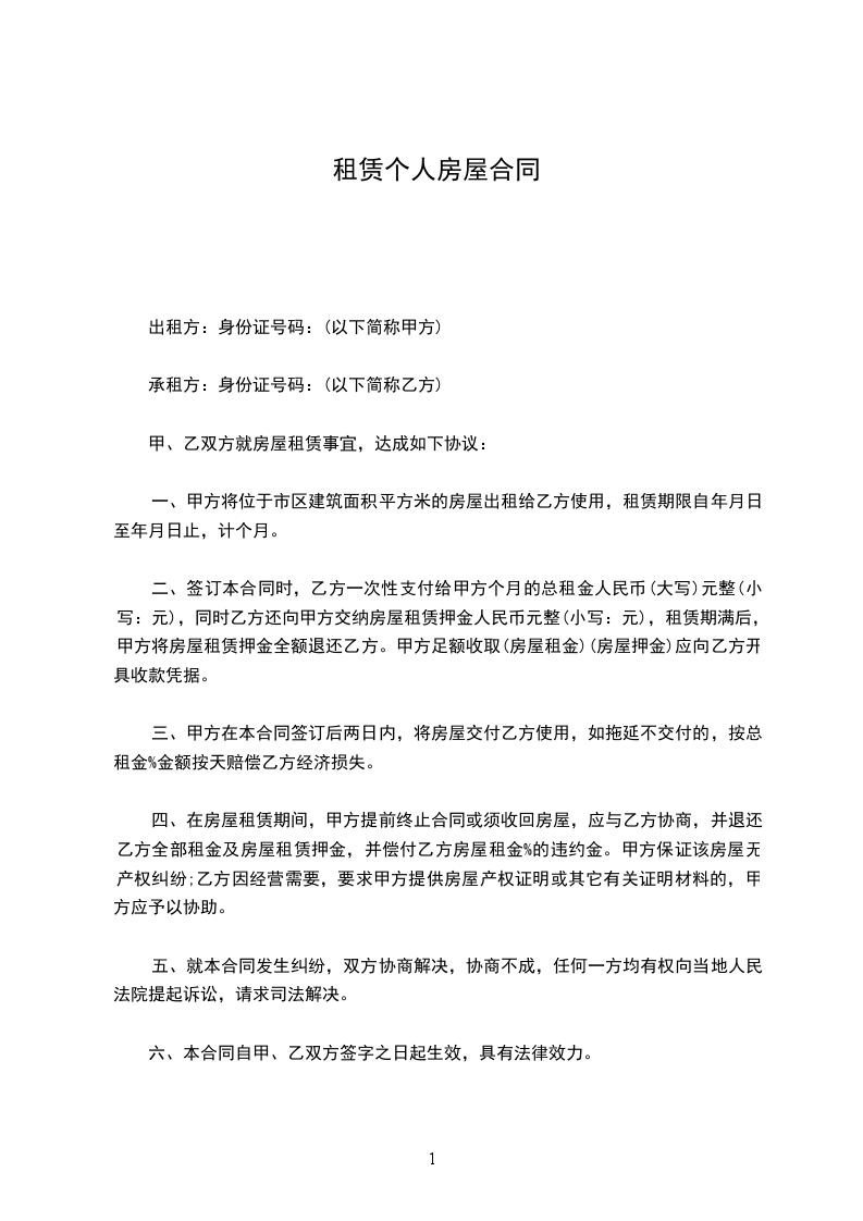 1、该房屋每月租金为________元。租金总额为_____元________。