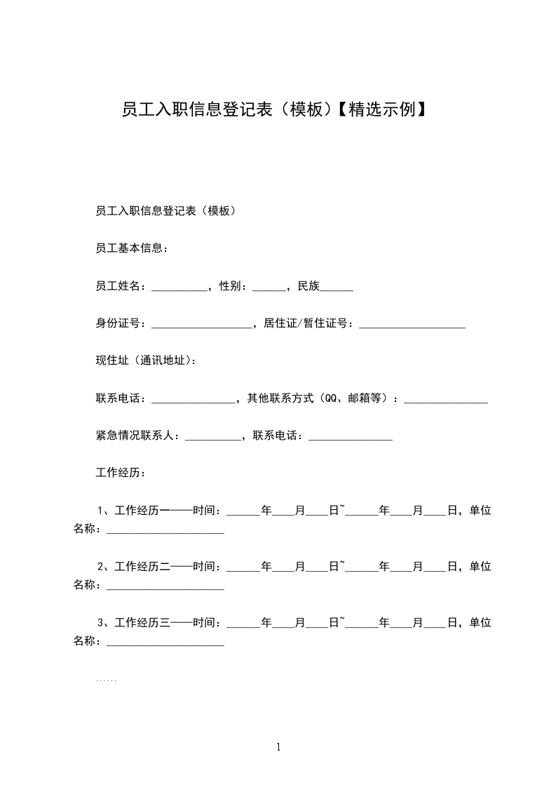 1、工作经历一——时间:______年____月____日~______年____月____日,单位名称:_____________________