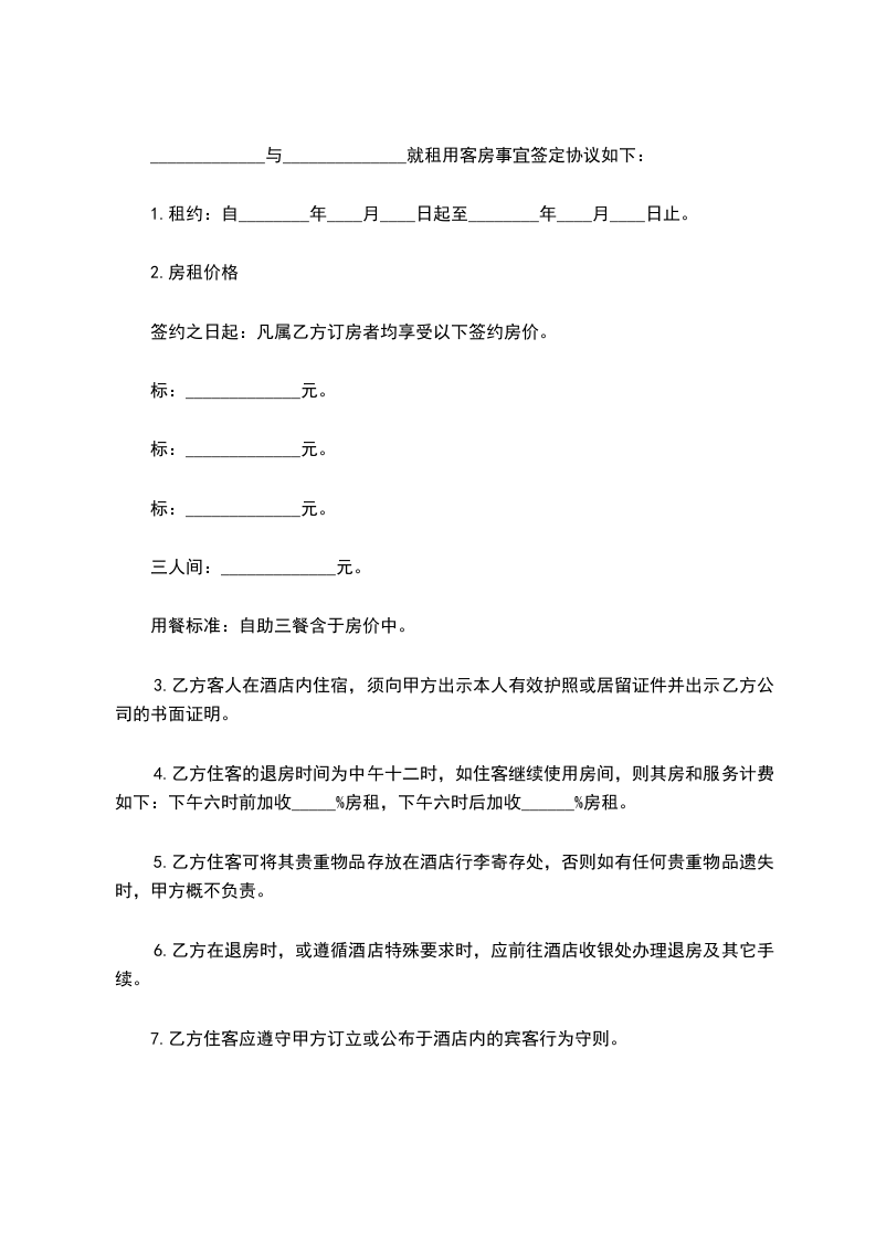 3.乙方客人在酒店内住宿,须向甲方出示本人有效护照或居留证件并出示乙方公司的书面证明。