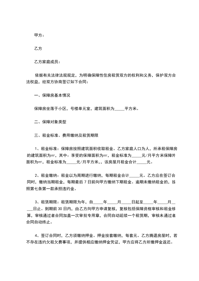 依据有关法律法规规定,为明确保障性住房租赁双方的权利和义务,保护双方合法权益,经双方协商签订如下合同: