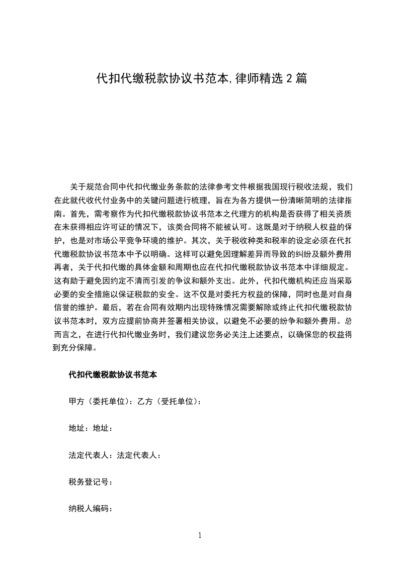 一、甲方根据《中华人民共和国税收征收管理法实施细则》的有关规定,委托乙方代扣税款,同时委托乙方受理代扣税款的纳税申报和依法加收滞纳金。