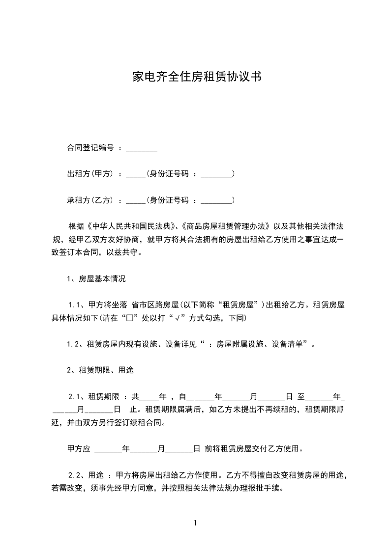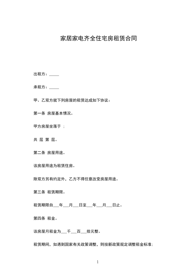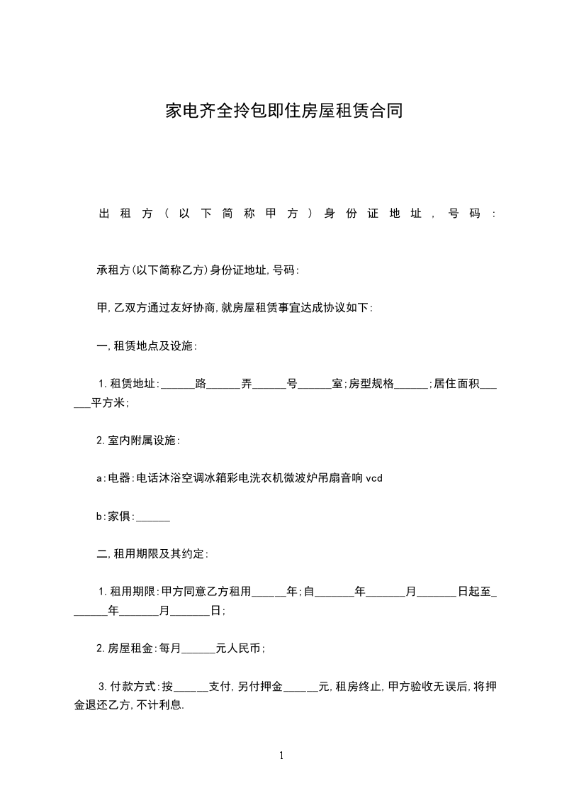 一、房屋租赁期自_________年____月____日至_________年_____月_____日共计_________年______个月。甲方应于_________年_____月_____日前将房屋按约定条件交付给乙方。房经甲乙双方交验签字盖章并移交房门钥匙及后视为交付完成。
