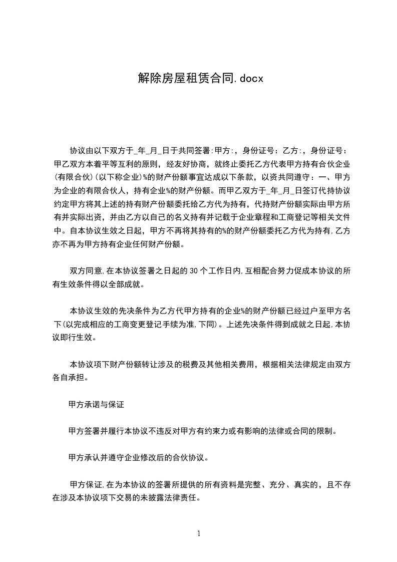 上述租赁合同及补充协议约定的租赁期为________年____月____日起至________年____月____日止。乙方因业务调整于________年____月____日向甲方提出提前终止租赁合同及补充协议的要求。现甲、乙双方经过平等协商,一致同意订立如下条款,以解除租赁合同及补充协议: