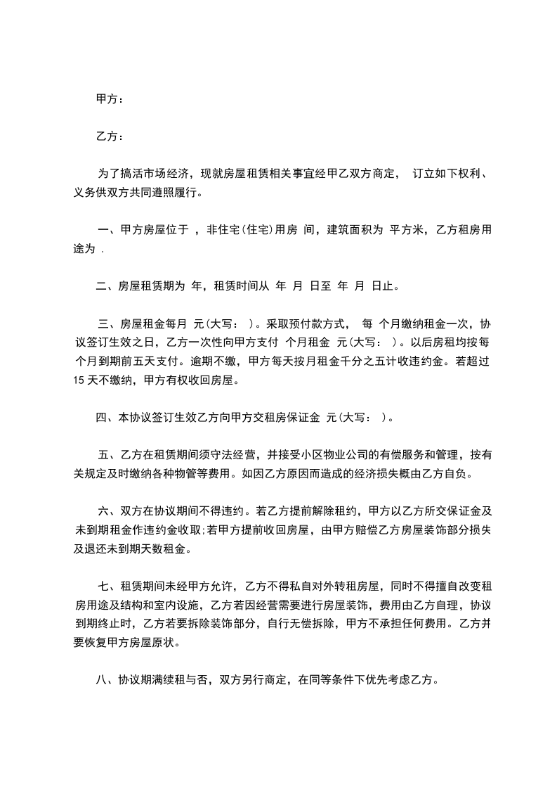 为了搞活市场经济,现就房屋租赁相关事宜经甲乙双方商定,订立如下权利、义务供双方共同遵照履行。