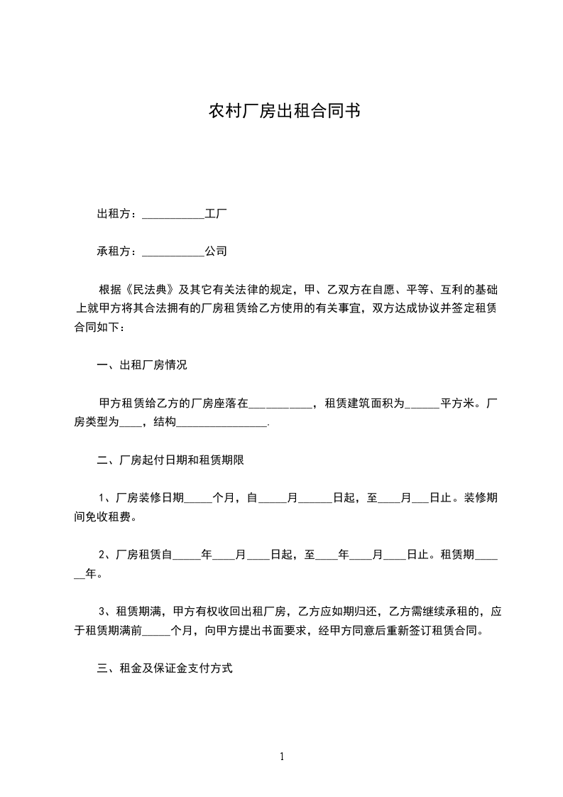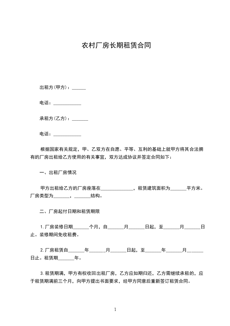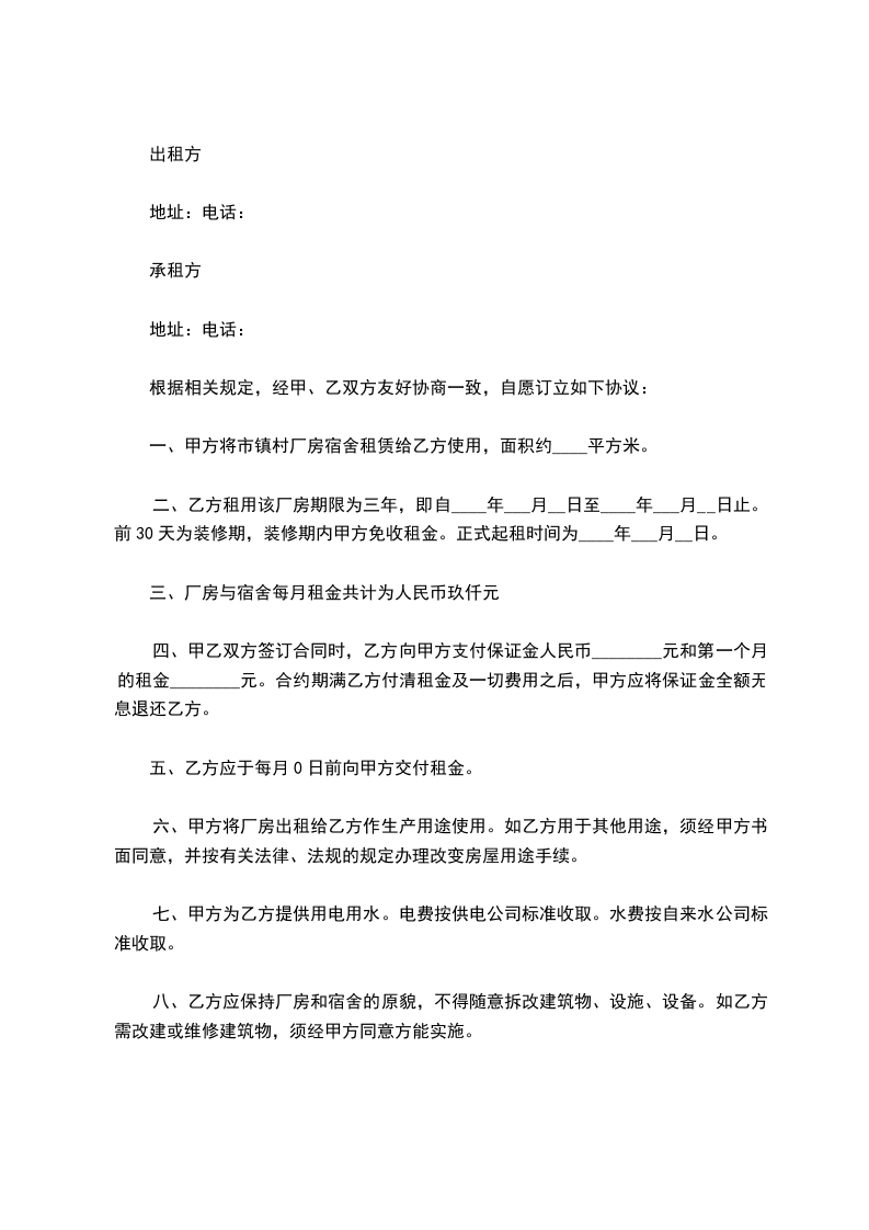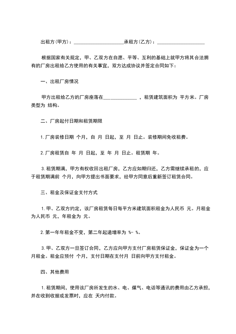 2、厂房租赁自_____年____月____日起,至____年____月____日止。租赁期______年。