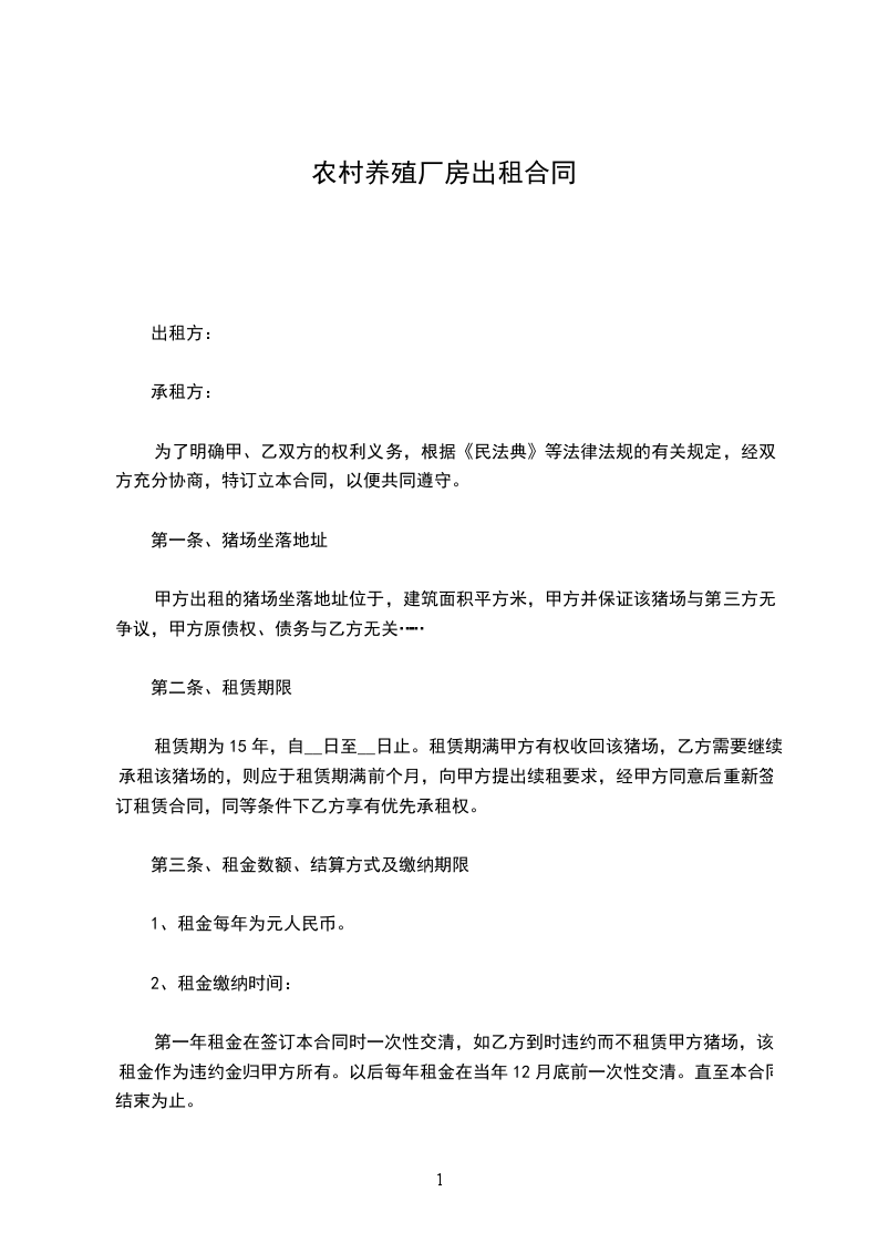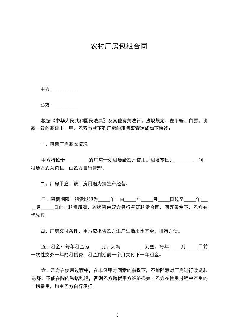 1、甲、乙双方约定,该厂房租赁每日每平方米建筑面积租金为人民币_____元。月租金为人民币_____元,年租金为___元。