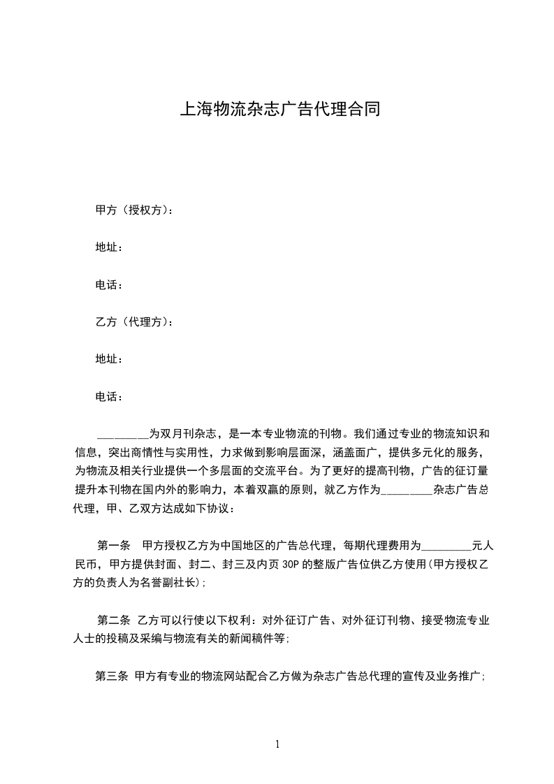 出租方:____________________________________地址:____________邮码:____________电话:____________