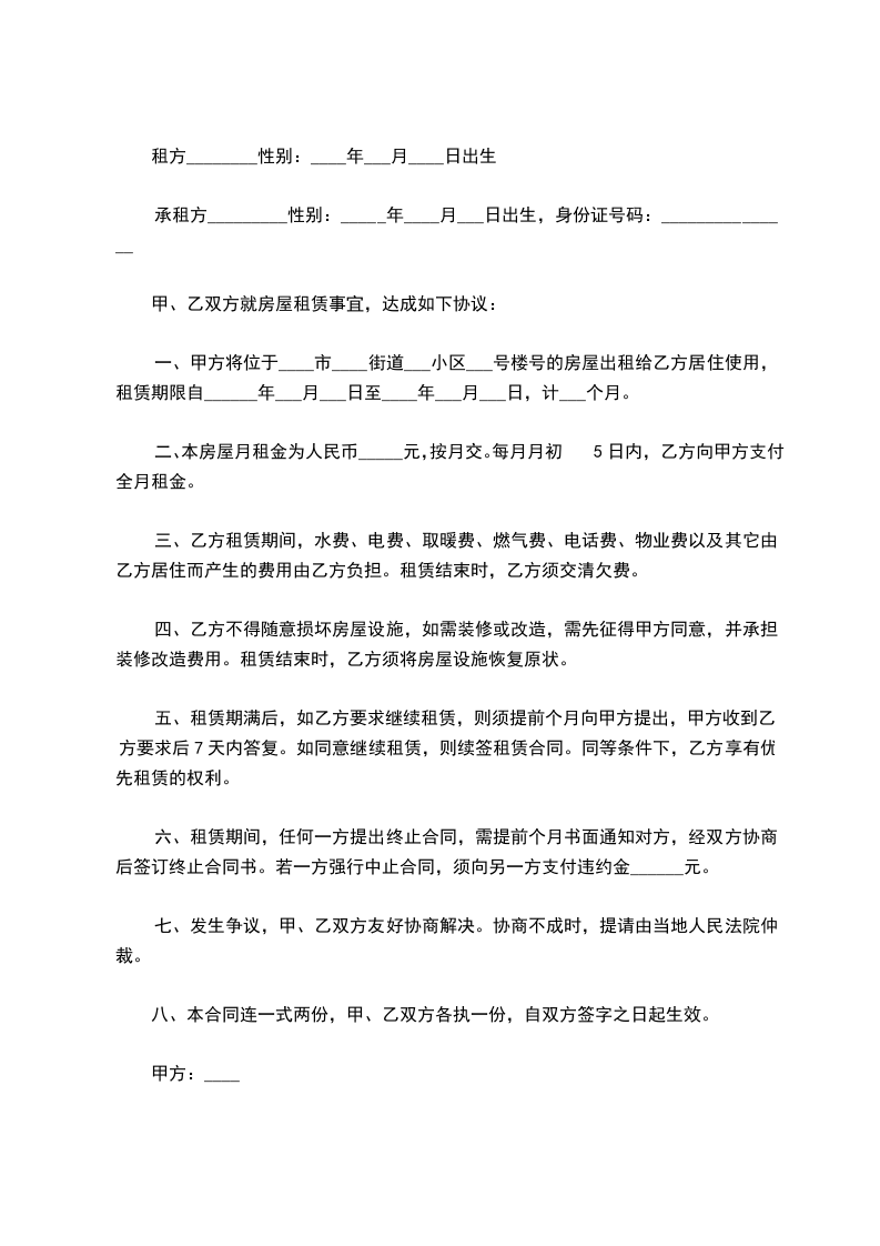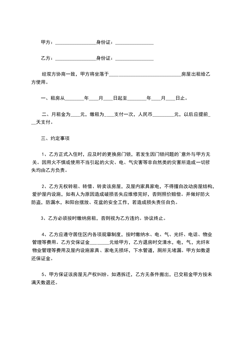 4、租赁时代,未经甲方赞成,乙方不得将所承租的衡宇转租他人,否则,则视为违约。