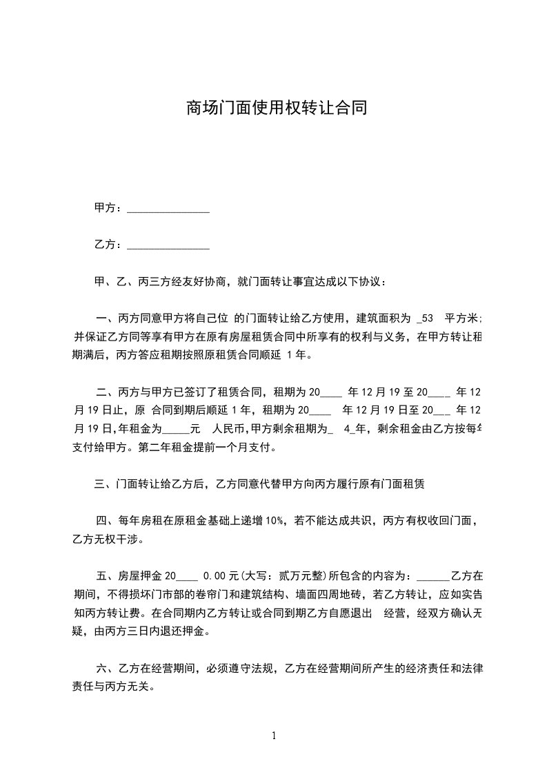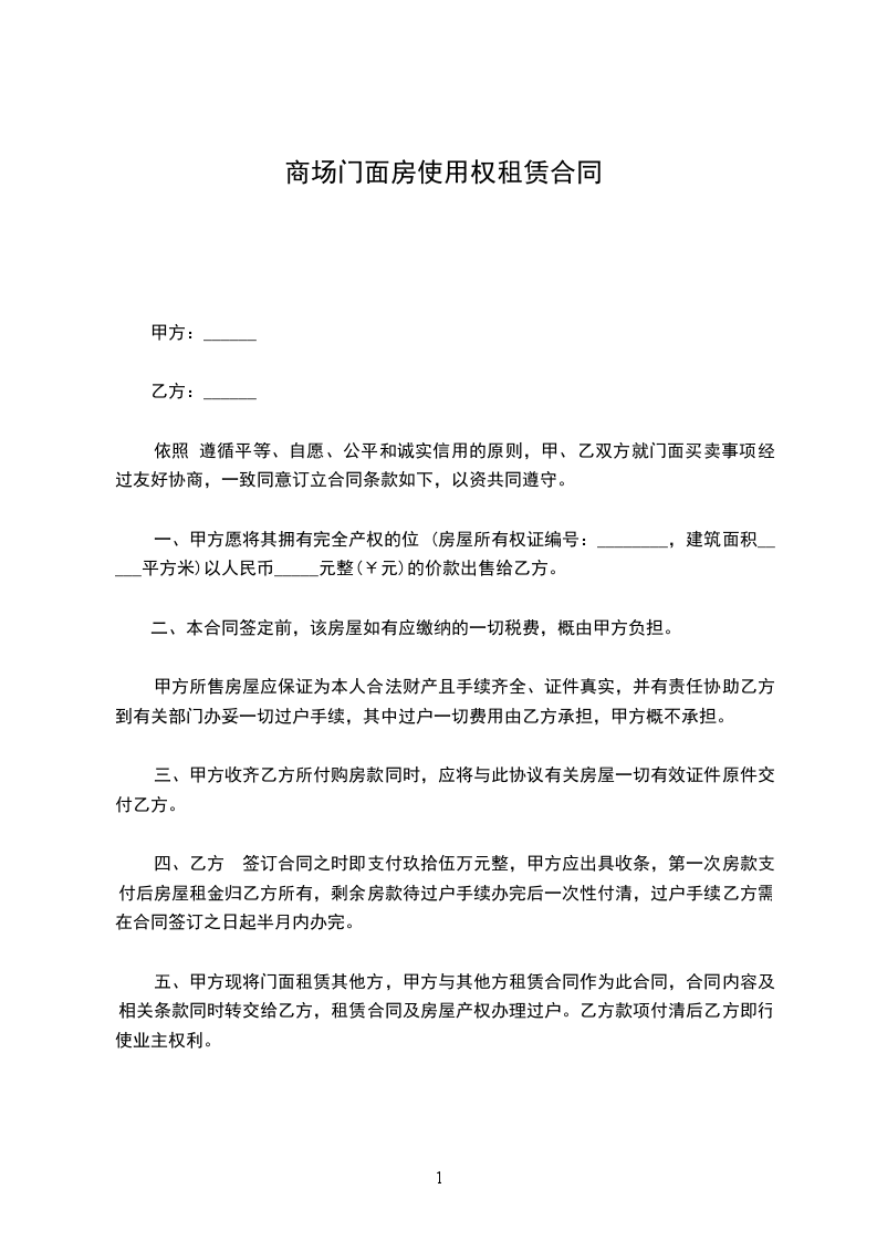 1、乙方按照本合同约定使用房屋,不承担门面自然损耗的赔偿责任。