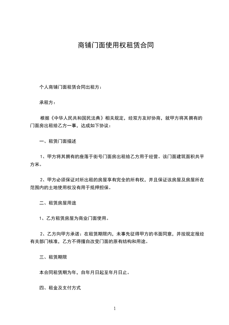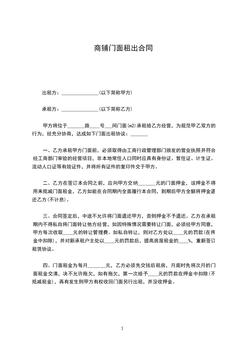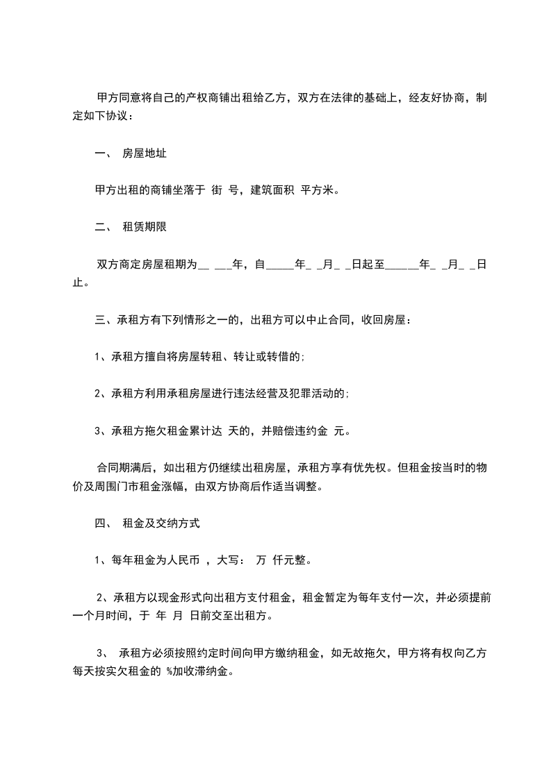 根据《中华人民共和国民法典》相关规定,经双方友好协商,就甲方将其拥有的门面房出租给乙方一事,达成如下协议: