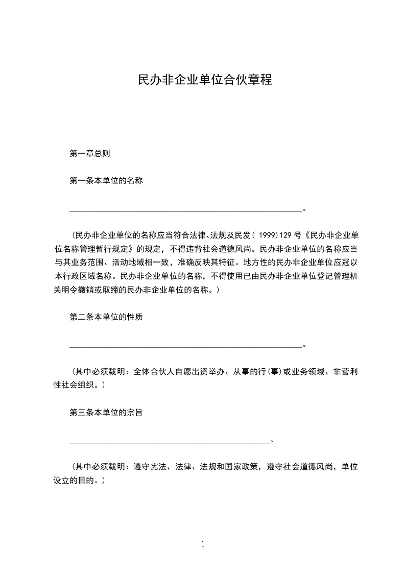 二、此文本旨在为民办非企业单位(合伙)制定章程提供范例。