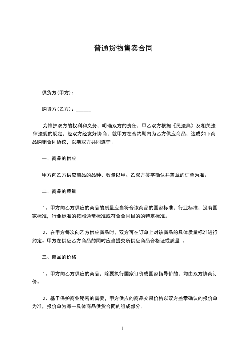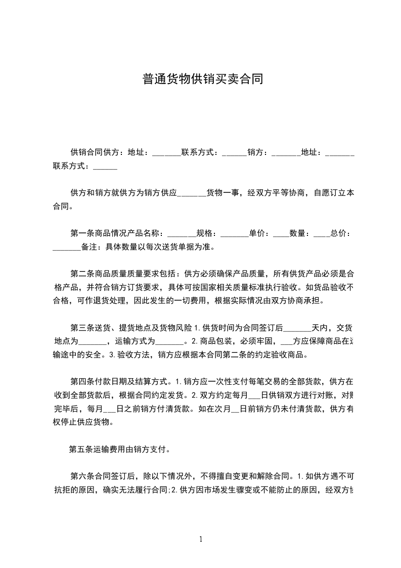 供方和销方就供方为销方供应_______货物一事,经双方平等协商,自愿订立本合同。