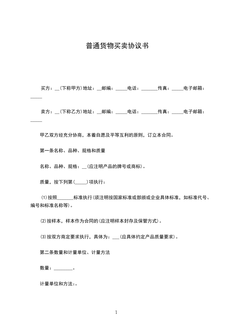 第一条商品情况产品名称:_______规格:_______单价:____数量:____总价:_______备注:具体数量以每次送货单据为准。