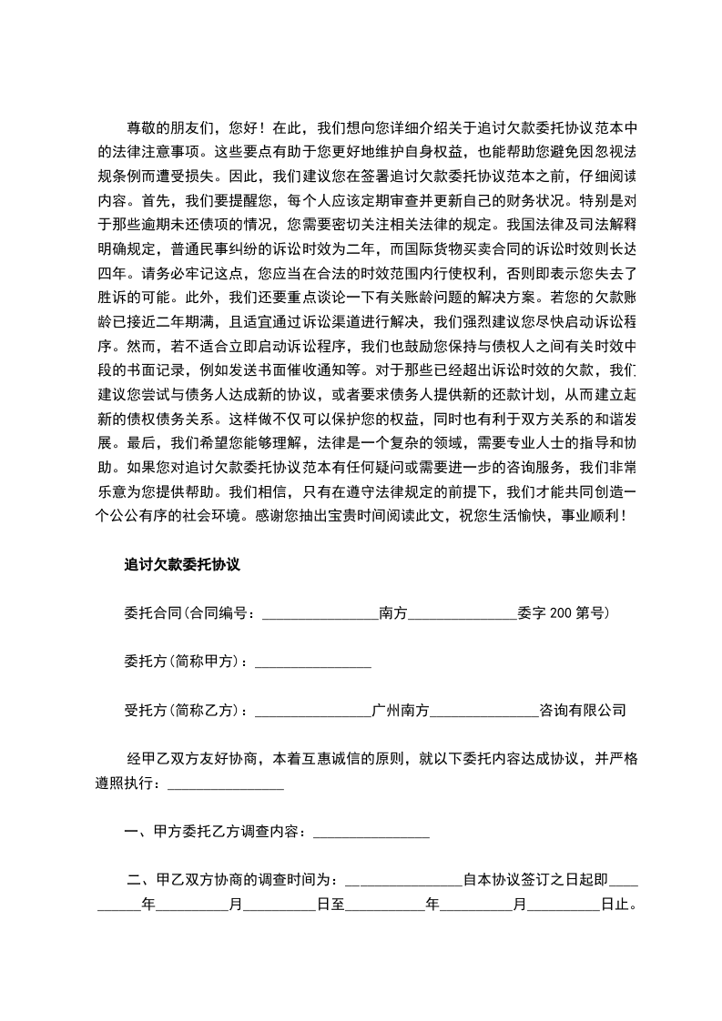 4、在对债务人的追讨中,如需采取法律措施如仲裁或诉讼时,被委托人应与委托人协商,共同采取相应的法律行动;