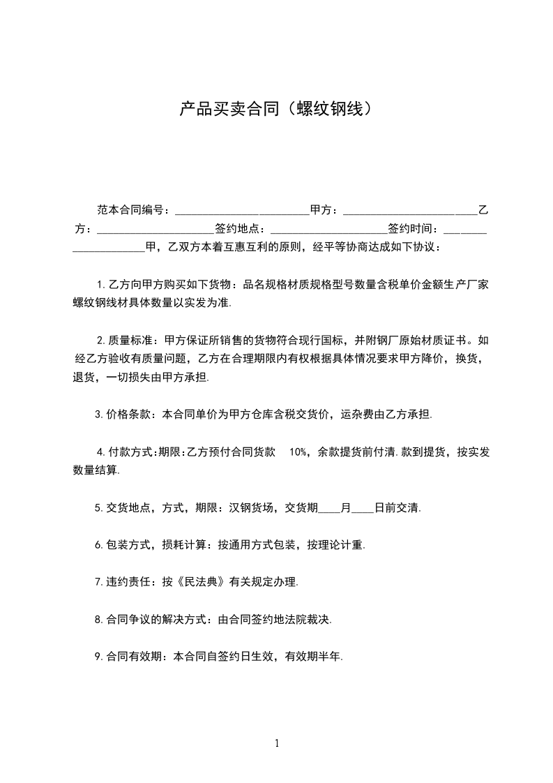 5.交货地点,方式,期限:汉钢货场,交货期____月____日前交清.