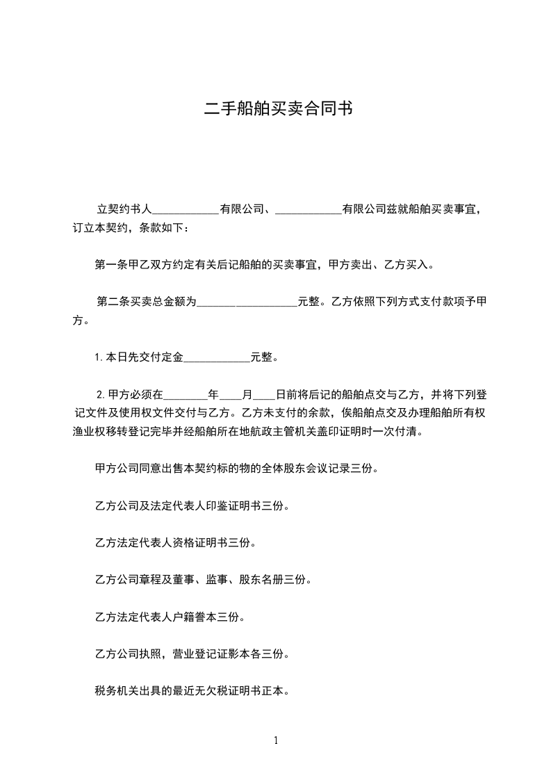 立契约书人____________有限公司、____________有限公司兹就船舶买卖事宜,订立本契约,条款如下: