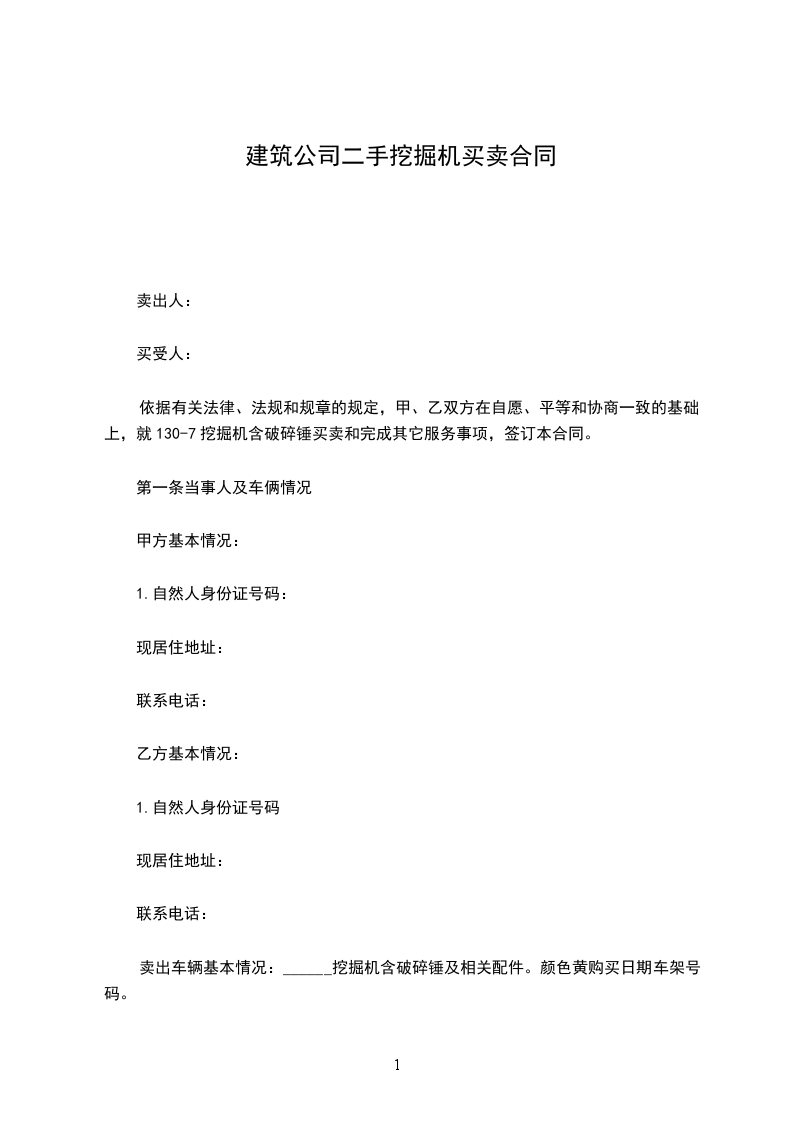 依据有关法律、法规和规章的规定,甲、乙双方在自愿、平等和协商一致的基础上,就130-7挖掘机含破碎锤买卖和完成其它服务事项,签订本合同。