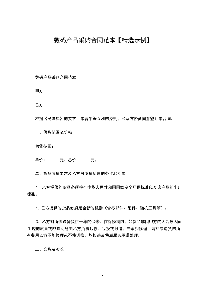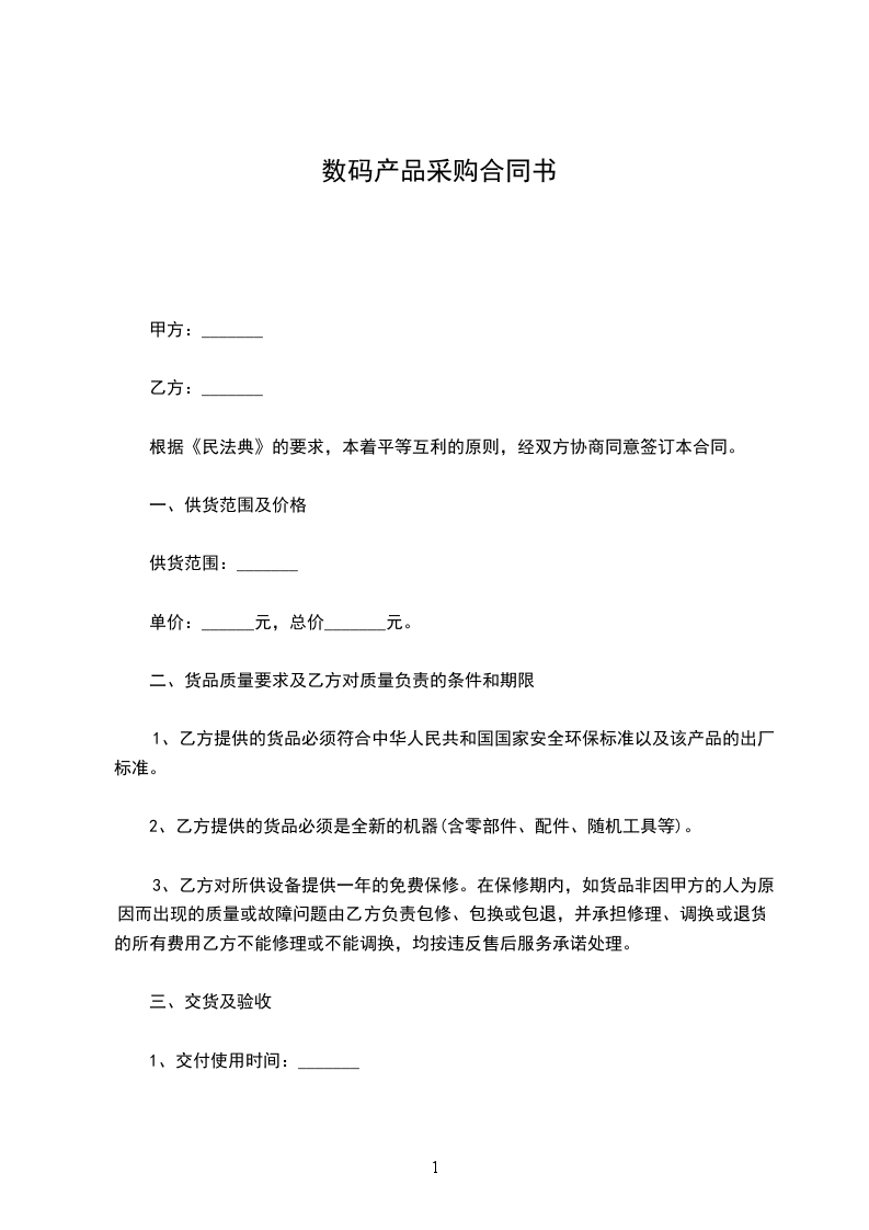 数码产品采购合同范本