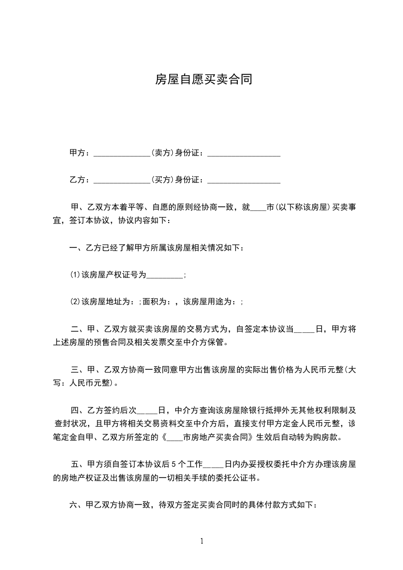 甲、乙双方就房屋买卖事项在平等自愿,协商一致前提下订立本合同条款如下,以资共同遵守。