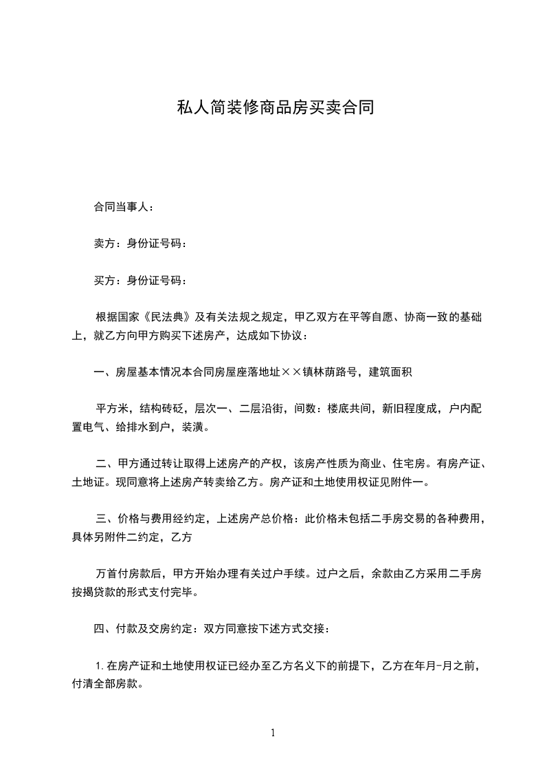 一、房屋基本情况本合同房屋座落地址××镇林荫路号,建筑面积