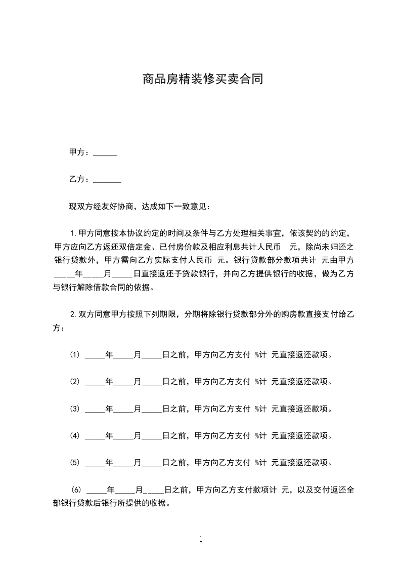 1.在房产证和土地使用权证已经办至乙方名义下的前提下,乙方在年月-月之前,付清全部房款。