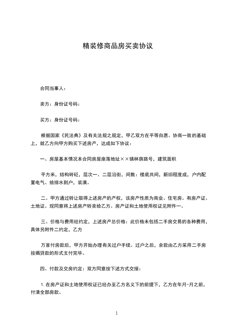一、房屋基本情况本合同房屋座落地址××镇林荫路号,建筑面积