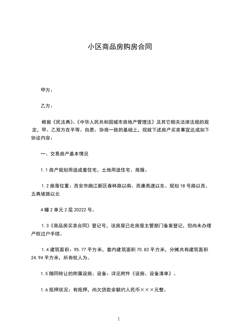 1.6抵押状况:有抵押,尚欠贷款余额约人民币×××元整。