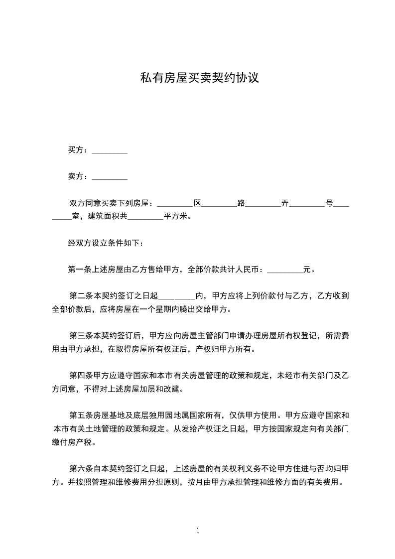 双方同意买卖下列房屋:_________区_________路_________弄_________号_________室,建筑面积共_________平方米。