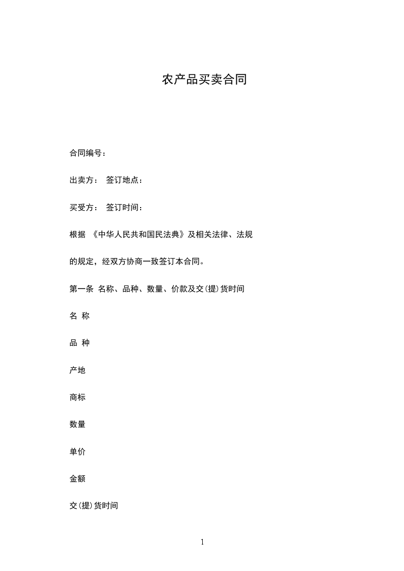 第一条 名称、品种、数量、价款及交(提)货时间